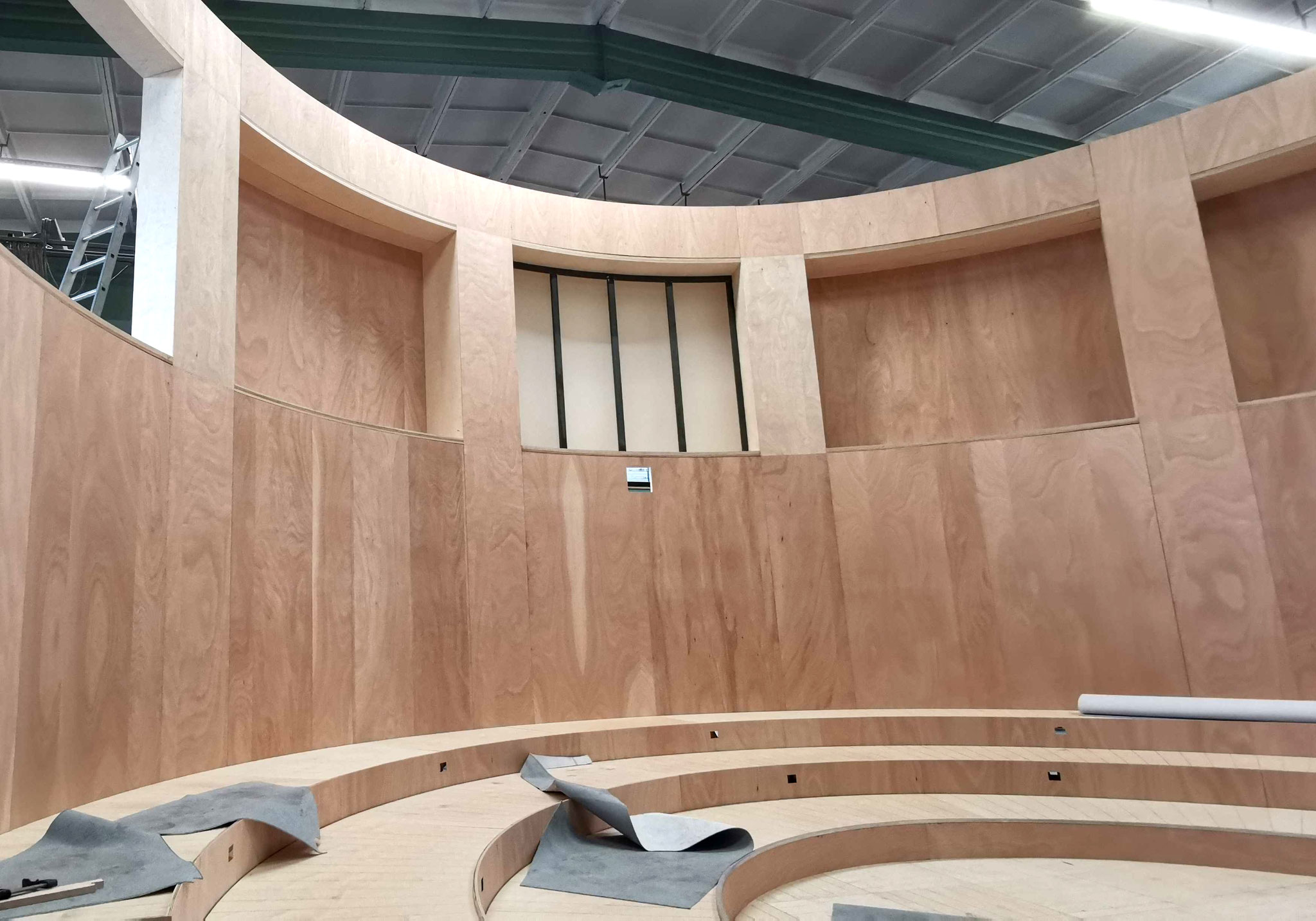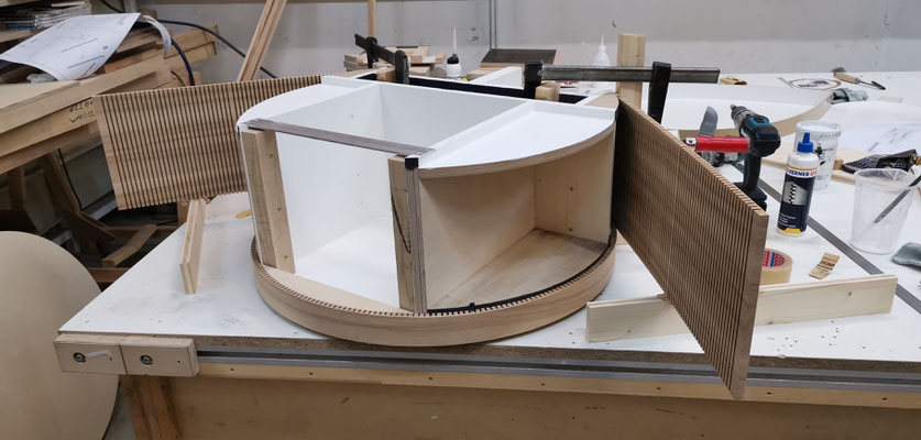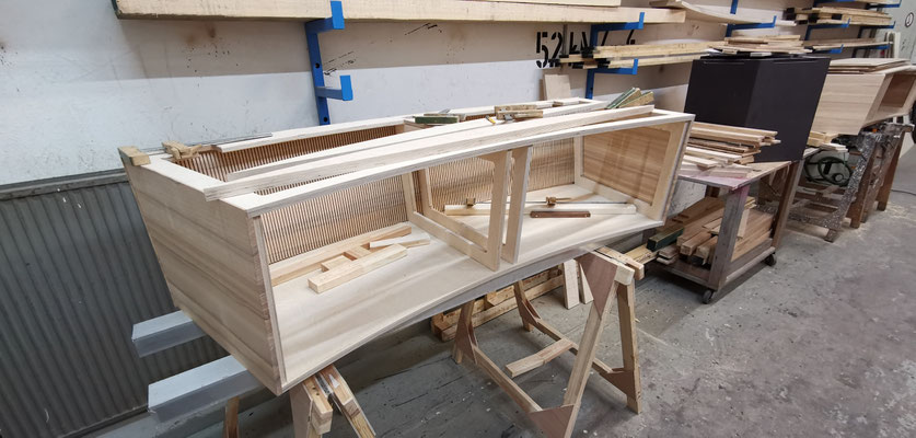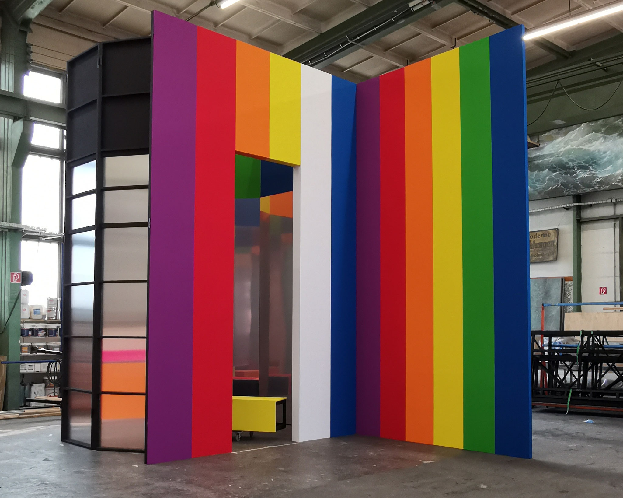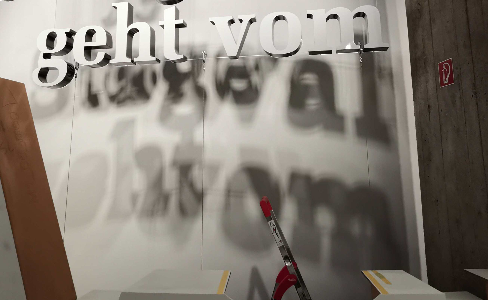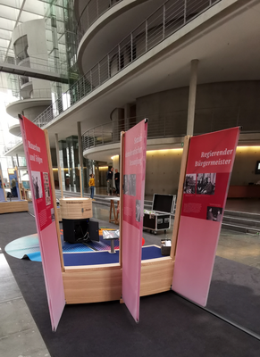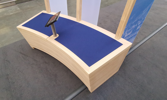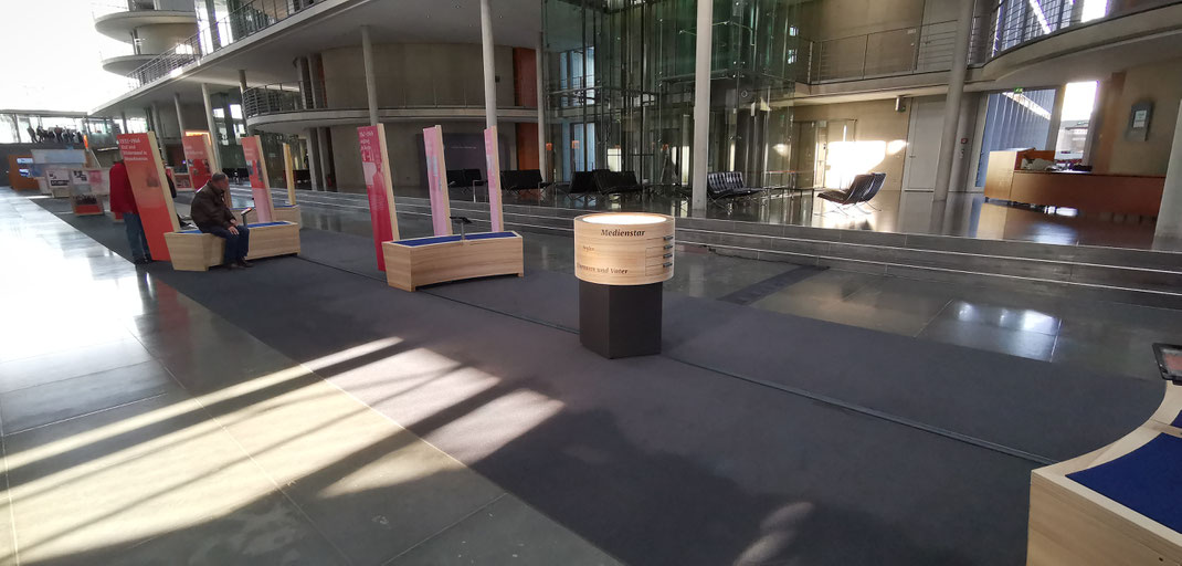 konzipiert, die zuerst im Paul-Löbe-Haus in Berlin installiert wurde und in allen Bundesländern gezeigt werden soll. Hierfür entwickelten wir die Konstruktion von fünf Eschenholzbänken sowie