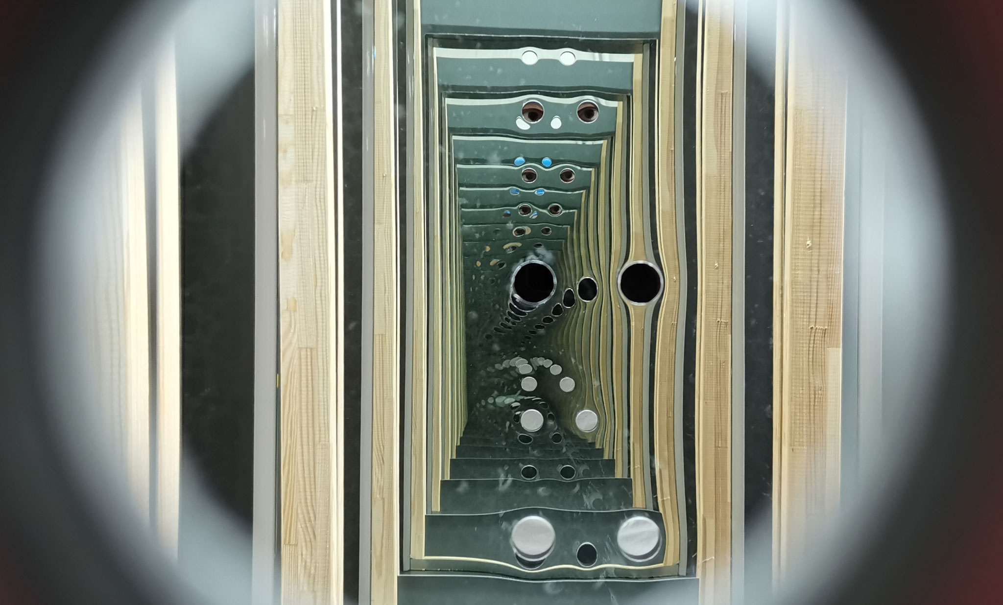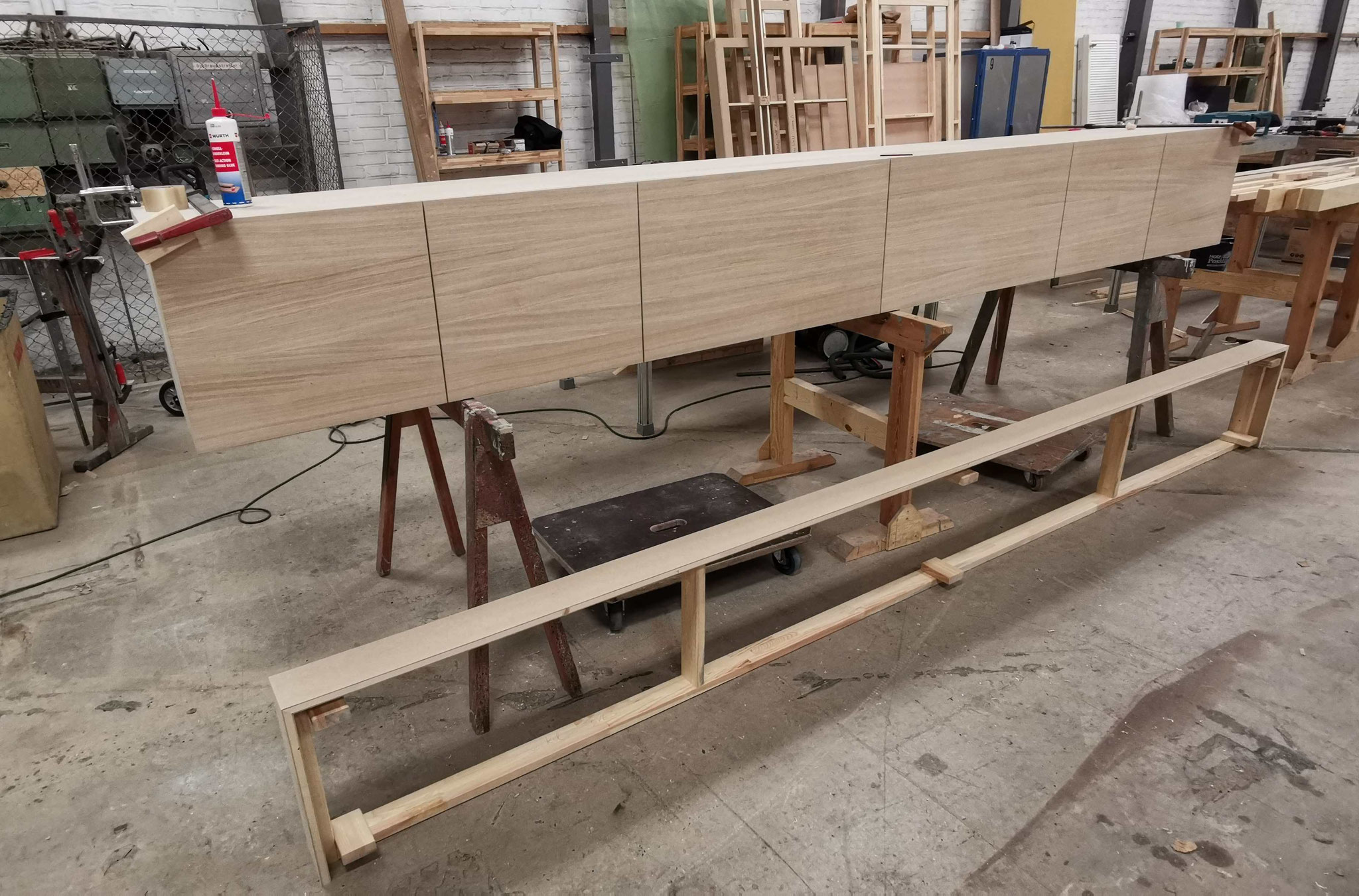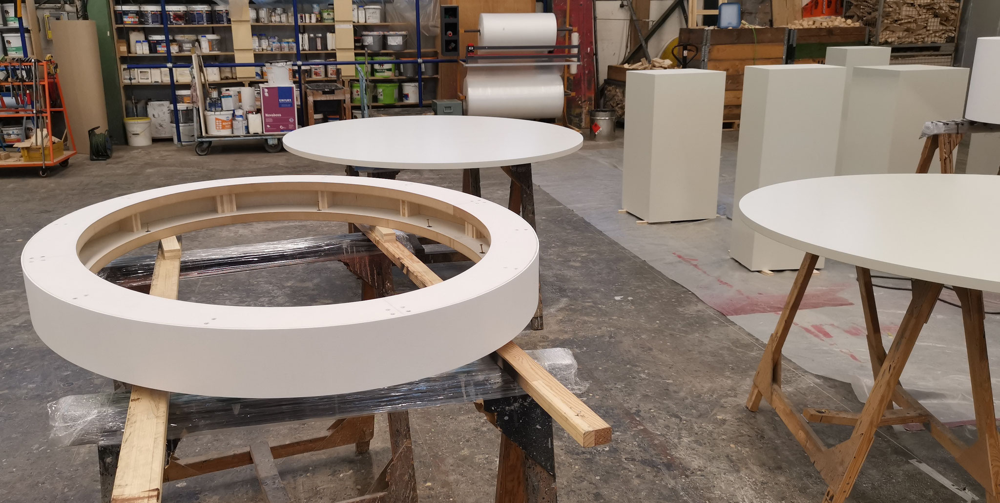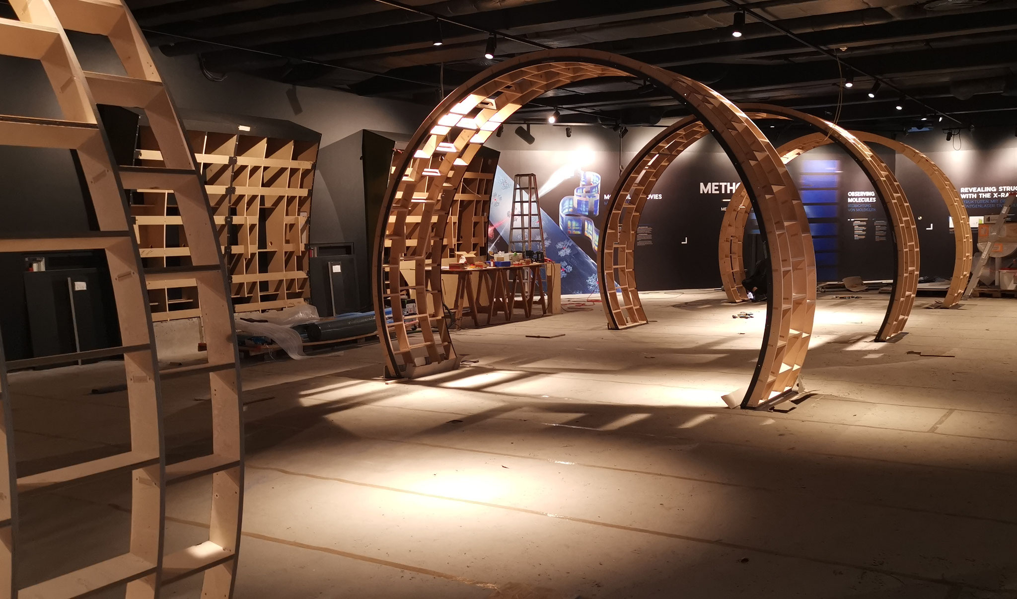 konzipiert, die zuerst im Paul-Löbe-Haus in Berlin installiert wurde und in allen Bundesländern gezeigt werden soll. Hierfür entwickelten wir die Konstruktion von fünf Eschenholzbänken sowie