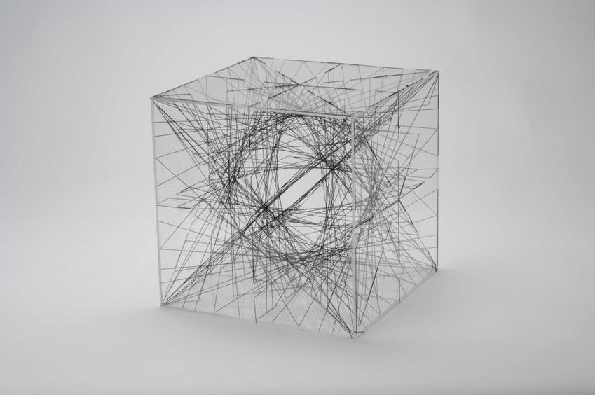 Punkt und Linie, Maße: 30cm³, Material: Plexiglas, Schnur